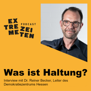 Die aktuelle Dezember-Folge unserer Podcastreihe „Extreme Zeiten“ ist erschienen. Diesmal interviewt Moderatorin Angela Fitsch den Leiter unseres Demokratiezentrums Hessen, Dr. Reiner Becker, zum Thema „Haltung“.