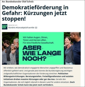 Zur Petition >> https://weact.campact.de/petitions/demokratieforderung-in-gefahr-kurzungen-jetzt-stoppen-geradejetztfueralle