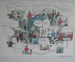Die gezeigten antijüdischen Vorfälle wurden von den Illustratorinnen Sophia Hirsch und Büke Schwarz in Bildern bzw. Bildgeschichten umgesetzt. Sie haben Schimpfworte und Gesten oftmals als Symbole gezeichnet und Reaktionen auf die antisemitischen Vorfälle teils durch Mimik und Gestik der Betroffenen oder der in das Geschehen involvierten Personen dargestellt.