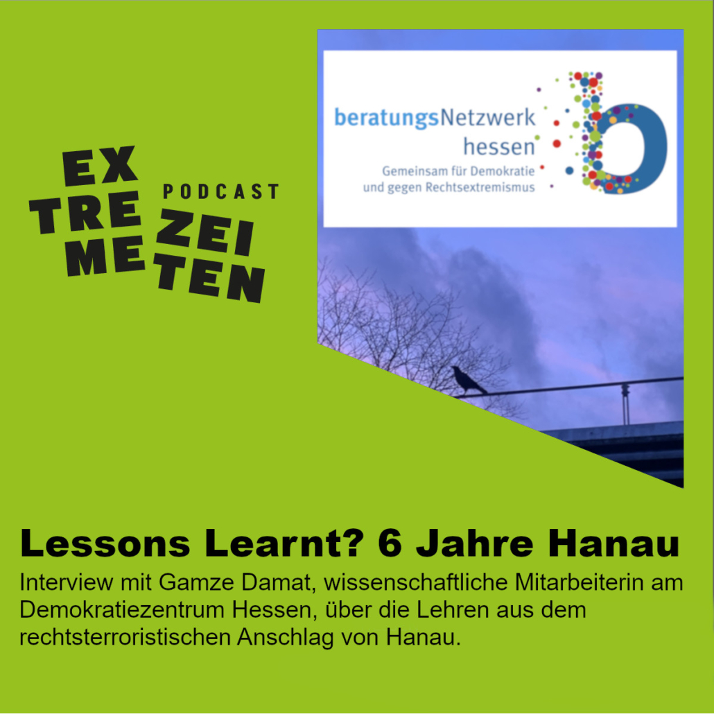 Sechs Jahre nach dem rechtsterroristischen Anschlag in Hanau blicken wir in dieser Folge von Extreme Zeiten auf die Prozesse der Bewältigung und Aufarbeitung. Zu Gast ist Gamze Damat, wissenschaftliche Mitarbeiterin am Demokratiezentrum Hessen. Sie gibt exklusive Einblicke in die aktuelle Studie „Lessons learnt?“, für die sie zahlreiche Interviews mit Betroffenen und Akteur:innen nach dem Anschlag ausgewertet hat. Im Fokus steht die Frage: Wie können und müssen Kommunen sowie die Zivilgesellschaft auf rechte Gewalt reagieren?