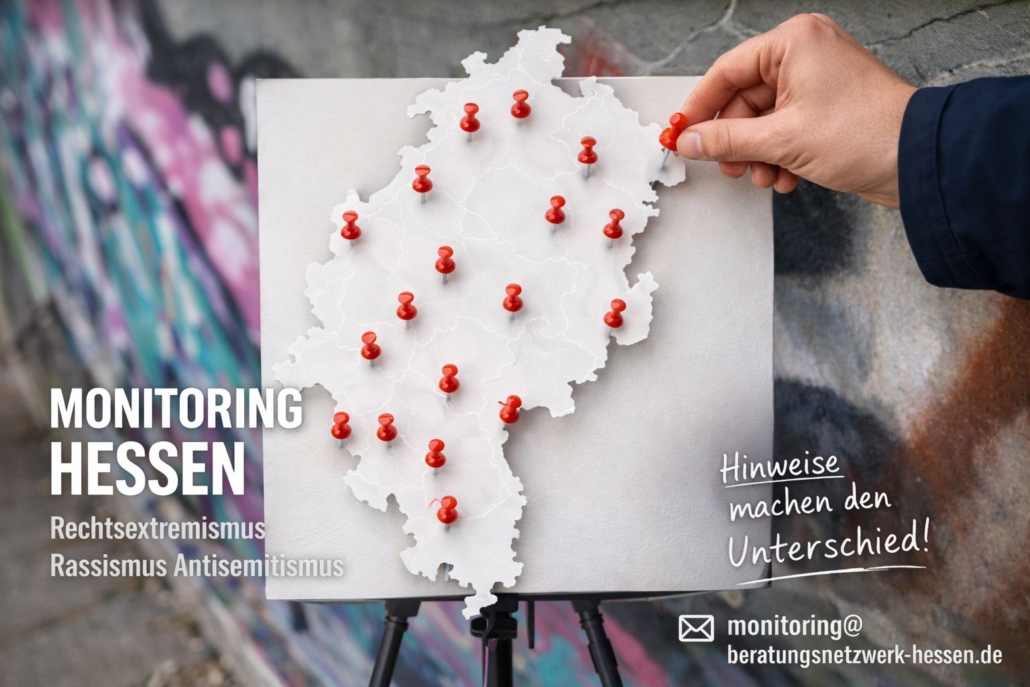 17.4.2026 Ein Rabbiner wird im Supermarkt angegriffen. An Schulen werden Hakenkreuze geschmiert und Parolen gerufen. Engagierte Menschen erhalten Hassmails mit Gewaltfantasien. Diese Vorfälle stehen nebeneinander – und wirken oft wie einzelne Meldungen. Erst wenn man sie zusammenführt, wird erkennbar, was dahinter liegt. Der Monitoring-Bericht des Demokratiezentrums Hessen setzt genau hier an: Er bündelt, dokumentiert und ordnet rechtsextreme, rassistische und antisemitische Vorfälle aus dem Land – und macht sichtbar, was im Alltag oft nur punktuell wahrgenommen wird.