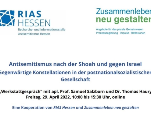 Gerolf Nittner2022-04-11 10:02:512022-04-11 10:05:59Antisemitismus-Werkstattgespräch mit RIAS Hessen am 29. April als Online-Veranstaltung