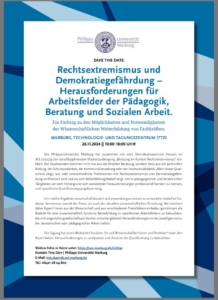 Im November 2024 in Marburg: Fachtag „Rechtsextremismus und Demokratiegefährdung – Herausforderungen für Arbeitsfelder der Pädagogik, Beratung und Sozialen Arbeit“